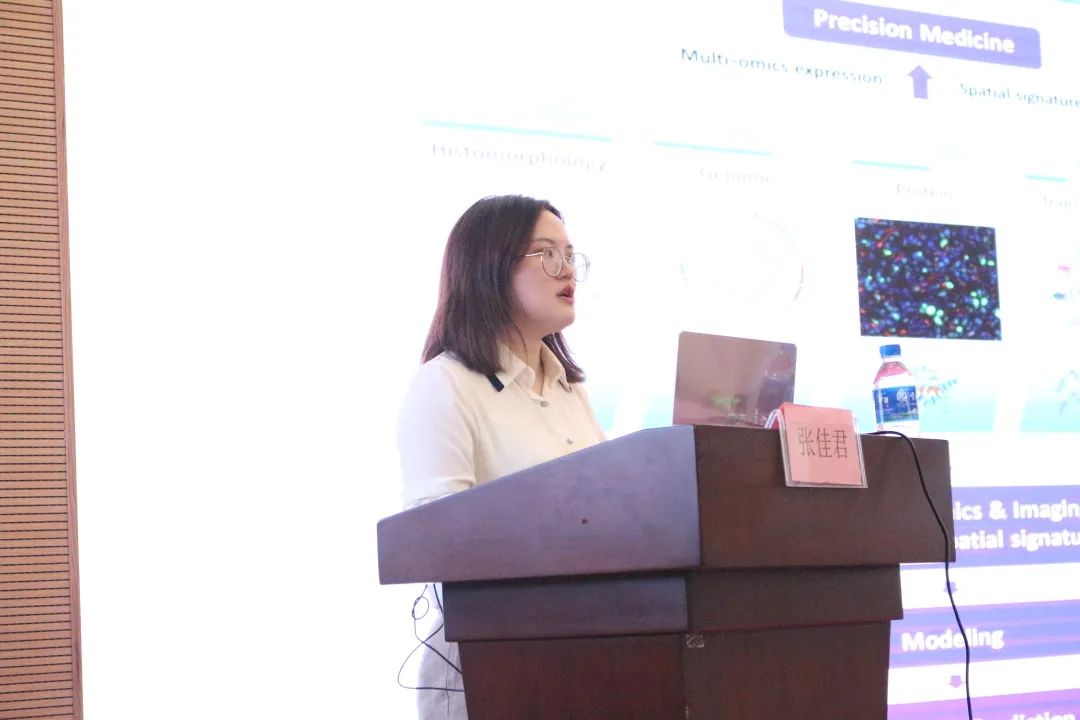 深圳华大生命科学研究院张佳君博士介绍了时空组学技术及前沿应用。时空转录组技术基于DNA纳米球开发,是具有高通量、超高分辨率、大视场的原位全景式技术,可以实现同一样本在组织、细胞、亚细胞、分子“四尺度“同时进行空间转录组分析。该技术可以实现组织原位测序,可应用于肿瘤研究、免疫研究、发育生物学、脑神经学、病理研究等,为了解细胞的基因表达及形态与局部环境之间的关系建立强大的研究基础。