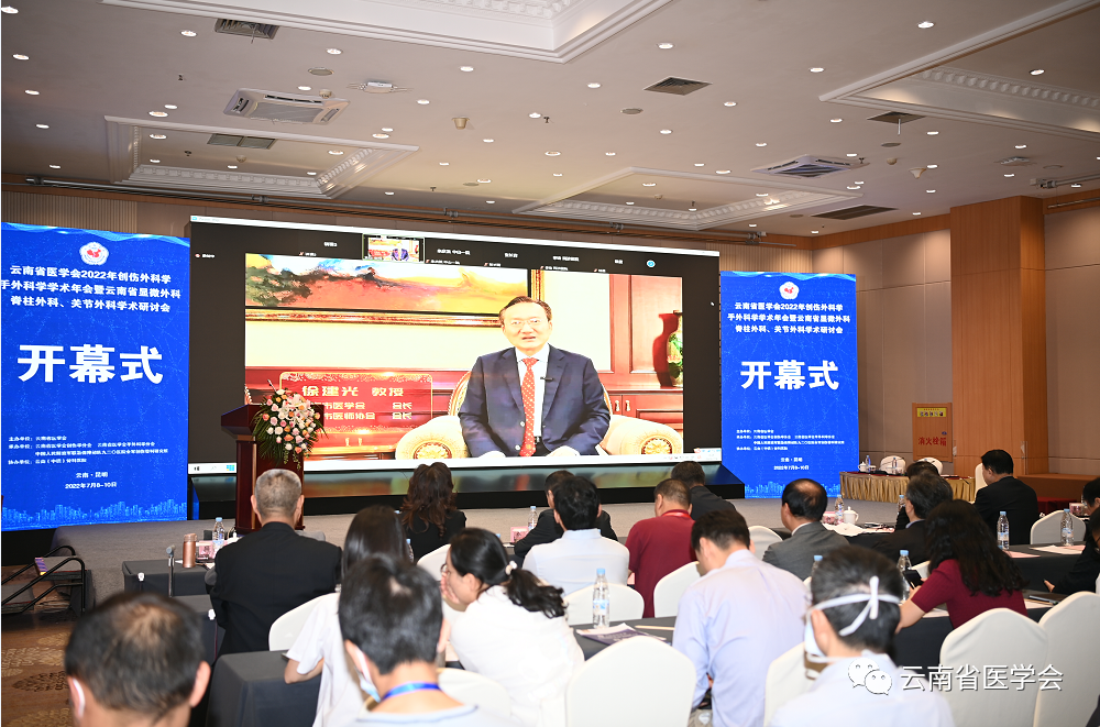 学术年会开幕式由云南省医学会创伤学分会主任委员徐永清教授主持。云南省卫生健康委杨洋主任、云南省卫生健康委医政医管局黄兴黎局长、云南省医学会舒方副会长兼秘书长、联勤保障部队第九二〇医院贺雷锋政委;河北医科大学附属第三医院院长张英泽院士;解放军总医院骨科医学部主任唐佩福少将;广州中山大学第一附属医院、中华医学会显微外科学分会主任委员顾立强教授;大连大学附属中山医院、中国医师协会显微外科分会会长赵德伟院长;上海中医药大学徐建光教授校长;南方医院创伤骨科主任、中华医学会创伤学分会主任委员余斌教授、《中华显微外科杂志》编辑部主任汪华侨教授等20余名国内著名骨科专家出席了线上线下开幕式并致辞。省内各百余家医疗机构的专科医师共计近200余人参加线上注册,会议线上直播观看达2万余人次。