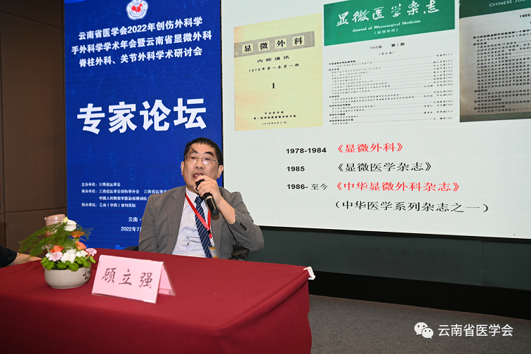 顾立强教授现场讲述疫情之下显微外科学术交流的的传承创新的发展历程。