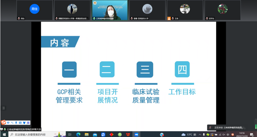 云南省肿瘤医院国家药物临床试验机构GCP办公室主任,中国抗癌协会医学伦理学专业委员会委员,云南省抗癌协会肿瘤药物临床研究专业委员会主任委员陈雪梅副主任药师,围绕“临床试验质量管理与受试者保护”进行学术交流。