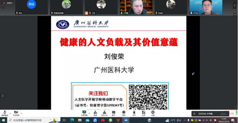 广州医科大学马克思主义学院院长、人文社会科学研究所所长、广东省医学伦理学研究中心主任、广州医科大学学术委员会副主任委员刘俊荣教授,围绕“健康的人文负载及其价值意蕴”进行学术交流。