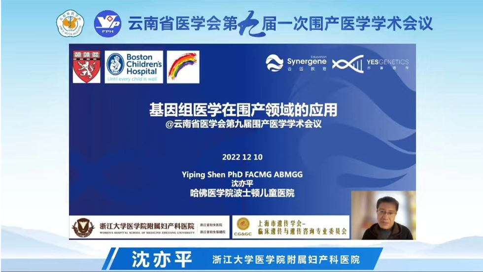 来自美国波士顿儿童医院遗传及基因部助理教授、哈佛医学院医学遗传学培训课程主任,上海儿童医学中心特聘教授,广西区妇幼遗传代谢中心实验室特聘技术主任,浙江大学医学院附属妇产科医院特聘教授沈亦平以《基因组医学在围产领域的应用》进行讲解。