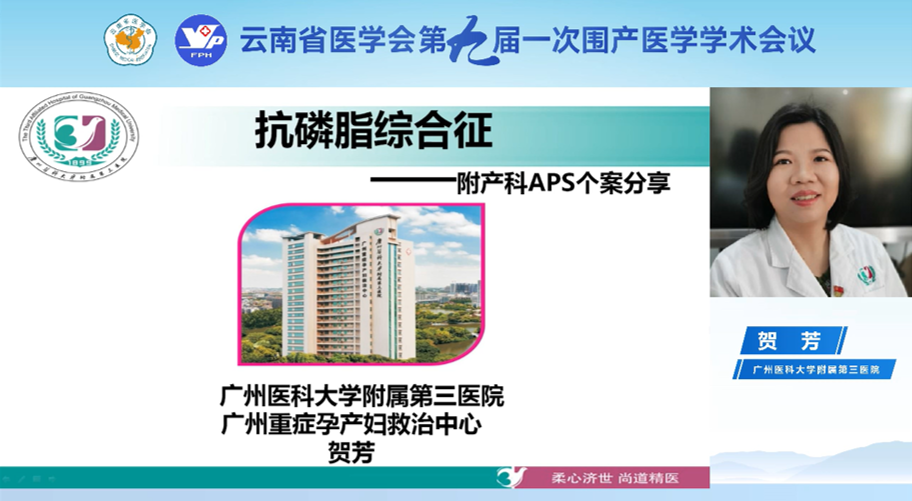 广州医科大学附属第三医院贺芳教授讲解了《产科抗磷脂综合征的诊治进展》。