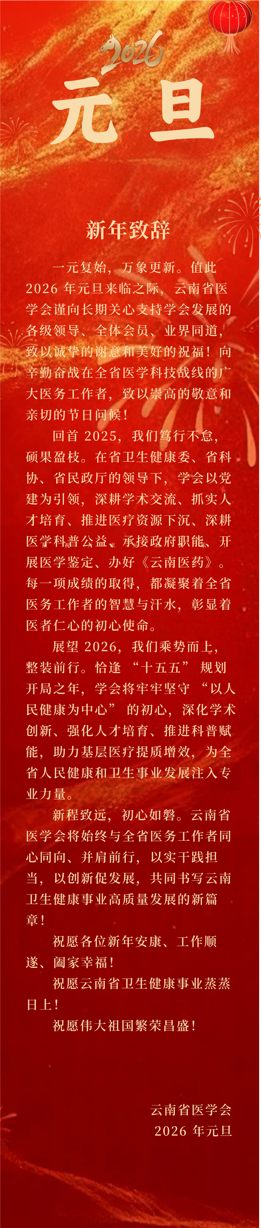 云南省医学会恭祝大家2026新年快乐