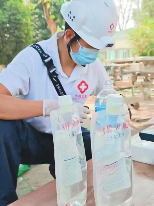 地震发生以来,缅甸当地连续40度以上的高温天气让灾后疫情防控形势格外严峻。为了保障当地医疗机构的基础条件,3月31日上午,中国云南救援医疗队在千床医院对饮用水和紧急用水开展水质检测,确保用水安全。