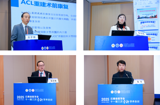 在第二节分别由中国人民解放军总医院王征教授带来《冠状位骨盆倾斜在脊柱下肢畸形诊疗中的作用探讨》、中国人民解放军陆军军医大学第二附属医院初同伟教授带来《脊柱矫形神经并发症的预防策略》、北京积水潭医院何达教授带来《机器人辅助脊柱外科手术的今天和明天》、苏州大学附属第一医院陈亮教授带来《退变性脊柱侧弯冠状面失平衡原因分析及处理策略》、贵州省人民医院孙立教授带来《分期TKA治疗化脓性膝关节炎》、《中华创伤杂志》编辑部刘国栋教授带来《中华医学会系列杂志论文撰写规范与技巧》、昆明医科大学第二附属医院舒钧教授带来《医源性脊柱感染面临的挑战及应对策略》、云南省第一人民医院陆声教授带来《数智骨科:精准医工体系的应用》的大会发言。由昆明医科大学第一附属医院王兵教授、云南大学附属医院陈仲教授、云南大学附属医院杨洪昌教授、云南省第一人民医院孟增东教授担任主持,并进行了精彩的学术讨论。