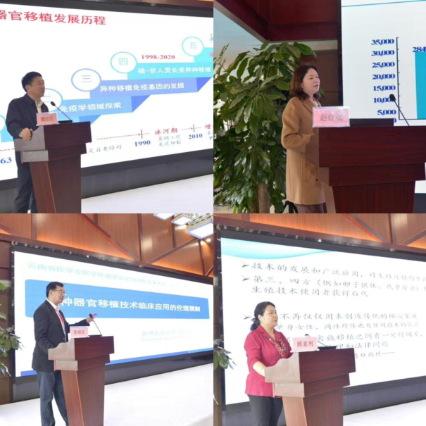 随后进行了精彩的学术讲座和交流。云南农业大学教授魏红江,围绕“全球异种器官移植技术研究进展”进行了分享。云南农业大学教授赵红业,围绕“猪-人异种器官移植进入临床面临的挑战”进行了学术交流。云南省医学会医学伦理学分会第二届主任委员,国家卫健委医学伦理专家委员会委员,中华医学会医学伦理学分会常委张瑞宏教授,围绕“异种器官移植技术临床运用的伦理规制”进行了授课。